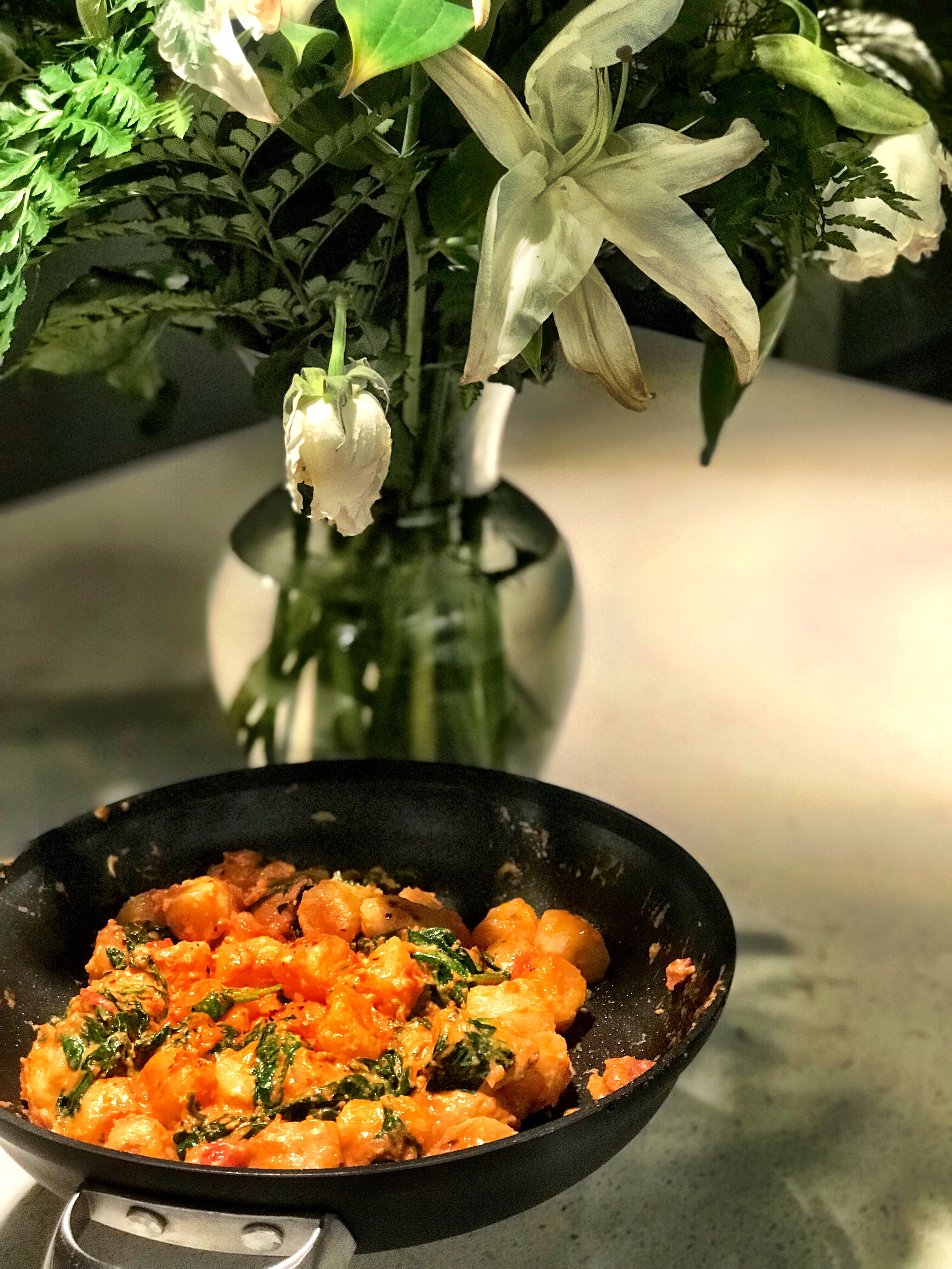 - Add frozen gnocchi into the same pan. Add more oil if necessary. Cook through, the crispier the better.